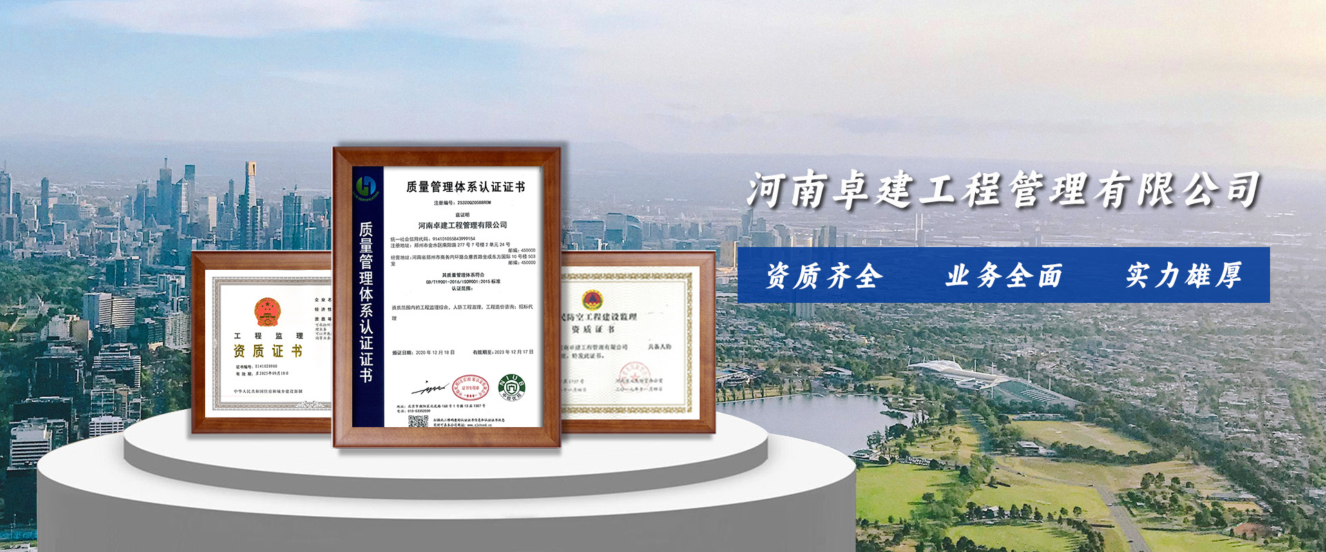 河南卓建工程管理有限公司(前身名為河南卓建建筑工程監理有限公司)是經鄭州市工商行政管理局批準,成立于2011年,經營業務范圍包括建筑工程監理、工程監理、工程項目管理、招標代理、造價咨詢等,具有工程監理綜合資質、人防工程丙級資質、造價咨詢資質乙級。公司已通過質量管理體系認證、職業健康安全管理體系認證、環境管理體系認證,公司是河南省監理協會會員單位。